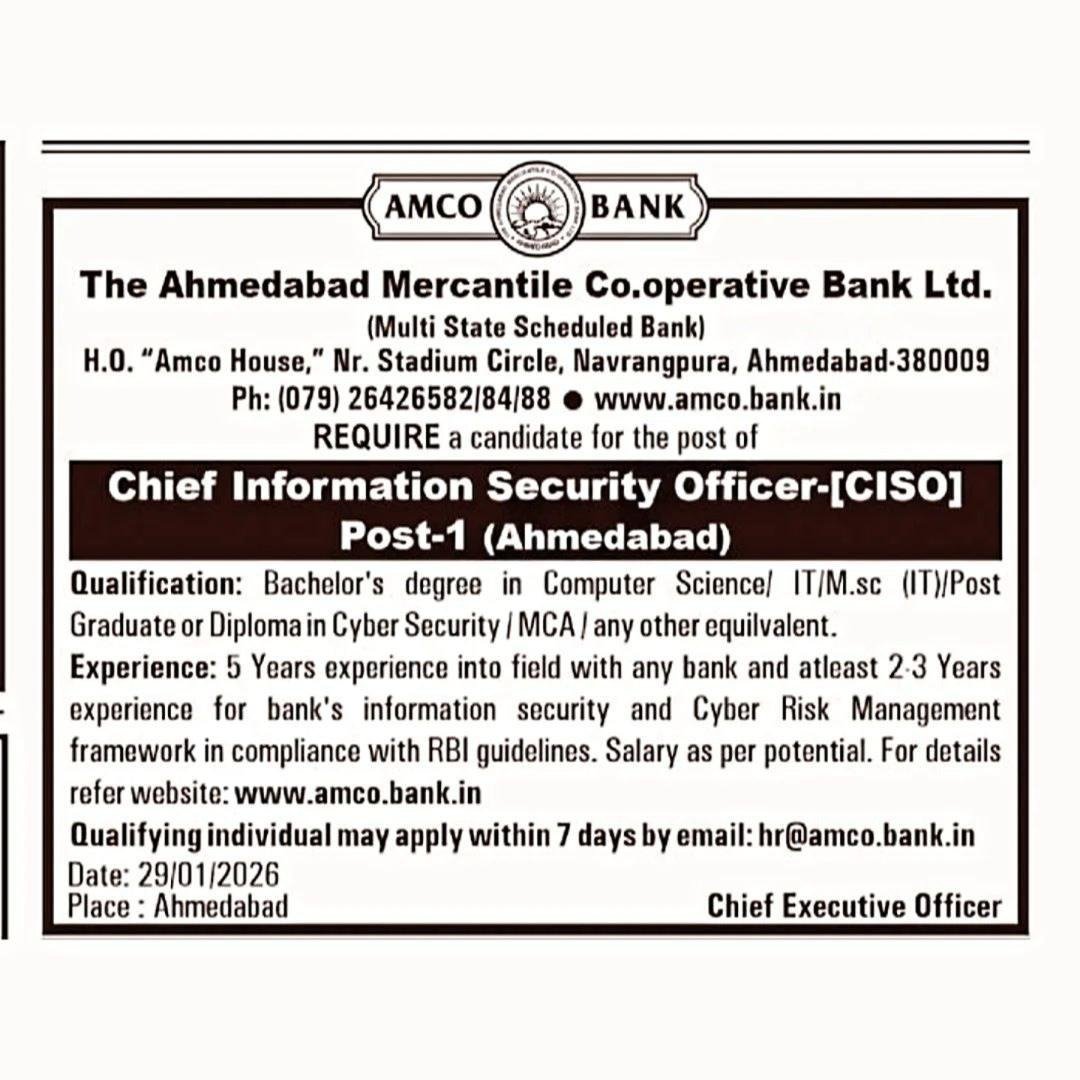 - AMCO Bank CISO Recruitment 2026 ની સત્તાવાર જાહેરાત (Official Notification)