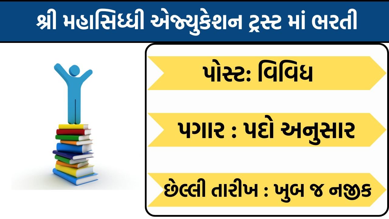 Shri Mahasiddhi Education Trust Recruitment: શ્રી મહાસિધ્ધી એજ્યુકેશન ટ્રસ્ટ દ્વારા વિવિધ પદો ધોરણ 10 પાસ પર સ્ત્રીઓ તથા પુરુષો માટે ભરતી જાહેર